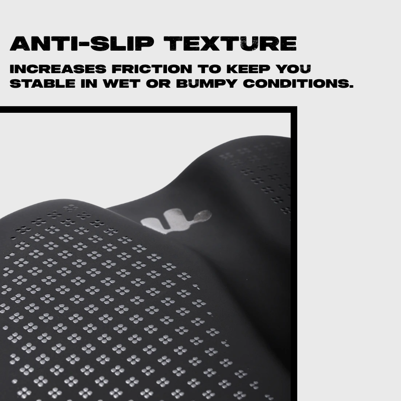 Die wellenförmige Basisstruktur absorbiert Stöße und Vibrationen der Straße, während die rutschfeste, strukturierte Oberfläche für festen Halt sorgt – auch auf unebenem Gelände oder bei Nässe.