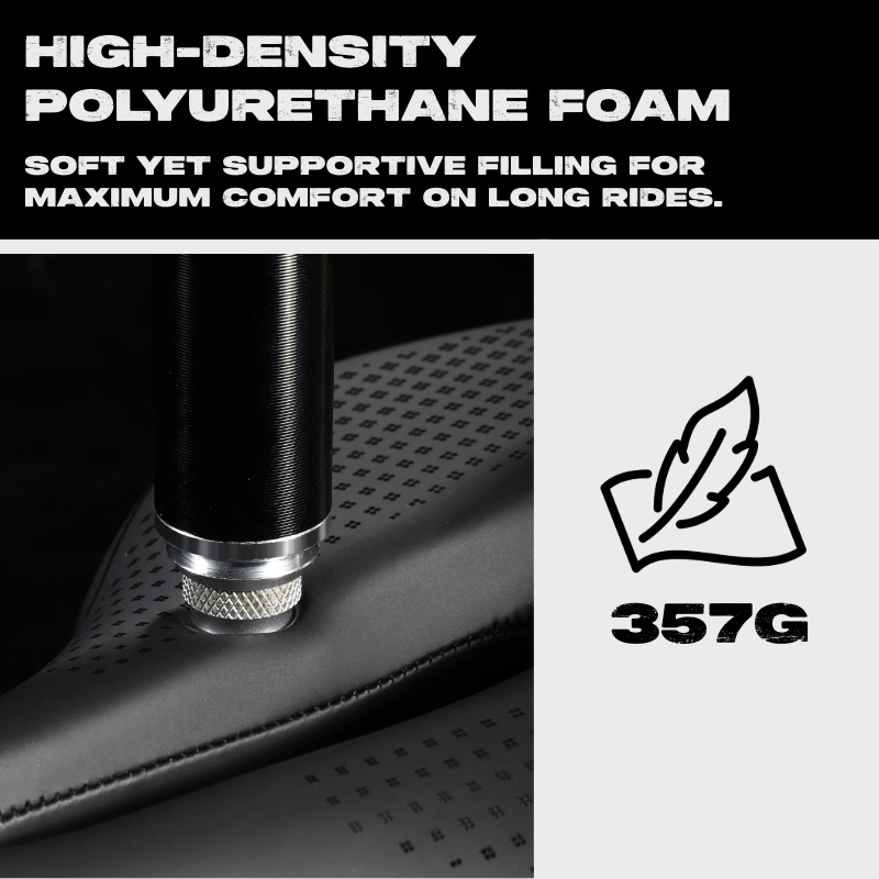 Mit nur 357 g Gewicht reduziert die stromlinienförmige Form die Belastung des Fahrrads und verhindert Reibung an den Oberschenkeln – ideal für ambitioniertes Rennrad- oder Trailradfahren. Der hochdichte Polyurethanschaumkern im Inneren bietet weiche, stützende Polsterung, die sich Ihren Bewegungen anpasst und den Druck auf langen Fahrten reduziert.